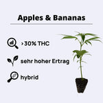 Apple Bananas: Tropisch-fruchtiges Profil, entspannende Indica-Effekte und dichte Bud-Struktur.