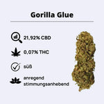 Mit einem CBD-Gehalt von rund 21,92 % bringt Gorilla Glue ein kraftvolles, tiefes Aroma ins Spiel. Ideal für entspannte Abende, konzentrierte Auszeiten oder ruhige Stunden – ihr intensiver Duft schafft eine angenehme, erdige Atmosphäre, die sich hervorragend zum Abschalten eignet. Der typisch schwere Charakter der Sorte bleibt erhalten – ganz ohne psychoaktive Wirkung, dafür mit echtem Hanfprofil.