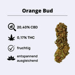 Mit einem CBD-Gehalt von rund 20,4 % entfaltet Orange Bud ein angenehm frisches, fruchtiges Aroma, das besonders in aktiven oder kreativen Phasen eine belebende Atmosphäre schafft. Die Sorte eignet sich hervorragend für den Tagesverlauf – sei es beim Arbeiten, Entspannen oder als aromatischer Hintergrund in geselliger Runde. Der natürliche Duft der Blüte bringt einen Hauch Sommer in jeden Raum – ganz ohne psychoaktive Wirkung.
