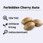 Auto Forbidden Cherry ist eine robuste, anfängerfreundliche Autoflower mit kompaktem Wuchsform (typisch 50-75 cm). Die Pflanze zeigt buschige, stabile Struktur mit großer zentraler Hauptblüte und mehreren soliden Seitenblüten. Der Schwierigkeitsgrad ist niedrig—eine leichte, stabilen Autoflower auch unter Herausforderungen. Blütezeit beträgt 9-10 Wochen indoor (63-70 Tage), outdoor 11-12 Wochen. Auto Forbidden Cherry ist außergewöhnlich robust und widerstandsfähig, gedeiht in vielen Bedingungen (Outdoor, Gewächshäuser, Indoor). Works in allen Systemen. Yield: 400-450 g/m² indoor, Outdoor variabel (50-150g+). Einfache Kultur—selektiv gezüchtet für Anfänger. Schnelle, garantierte Ernte. Perfekt für violette, schöne Blüten.