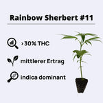 Rainbow Sherbert #11, auch als RS-11 bekannt, wurde von DEO Farms aus Oakland, CA gezüchtet – eine Kreuzung aus Pink Guava (aus dem OZ Kush-Projekt) und OZ Kush (OG Kush Breath × Zkittlez). Wizard Trees aus LA selektierte Phänotyp #11 und #54 aus dem ursprünglichen Rainbow Sherbert-Pool und brachte RS-11 zu breiter Bekanntheit. Die Sorte ist ein Kind aus OG Kush, Zkittlez und Sherbert-Linien – drei der einflussreichsten US-Genetiken ihrer Generation. RS-11 wurde 2023 Leafly Strain of the Year Runner-Up und ist heute in über 1.600 US-Dispensaries vertreten. Ihre Nichte Zoap (aus demselben DEO Farms-Kreuzungsprojekt) gewann 2024 als Budtender's Choice Strain of the Year.